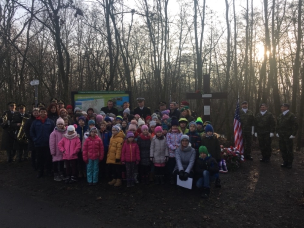 Žáci naší školy se zúčastnili piety u pomníku letců za účasti české a americké vojenské delegace. Školní pěvecký sbor pod vedením paní učitelky H. Urbánkové zazpíval 3 písně a přidali se k nim i vojáci.