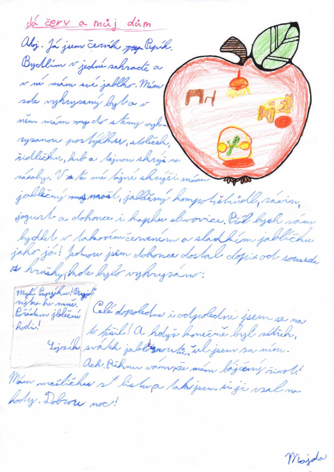 Celé dopoledne, ve všech předmětech, bylo JABLKO hlavním tématem. Děti přinesly různé odrůdy jablíček ze zahrádek i z obchodů. Ochutnávaly i poznávaly. Dozvěděly se, proč jsou jablka zdravá, jak se dají využít. V jednotlivých hodinách s jablky počítaly, zabrousily i do historie, zpívaly o nich, malovaly je a psaly slohová cvičení .
