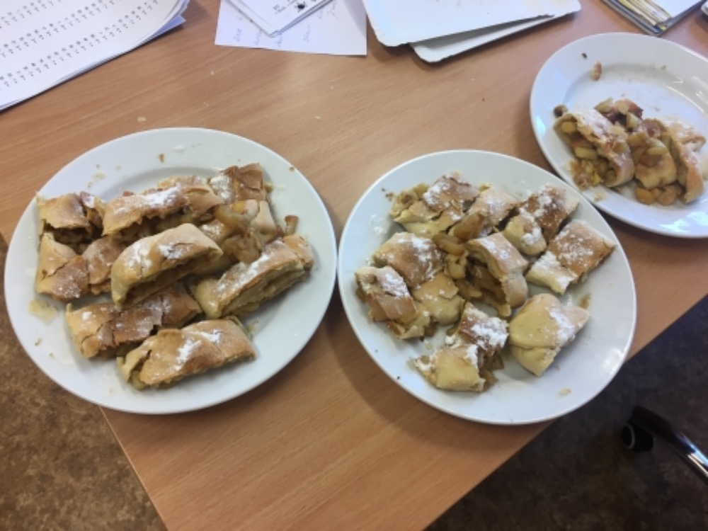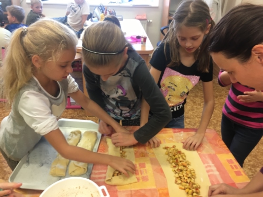 A ve školní družině nakonec děti s paní vychovatelkou upekly štrúdl, který se opravdu povedl!