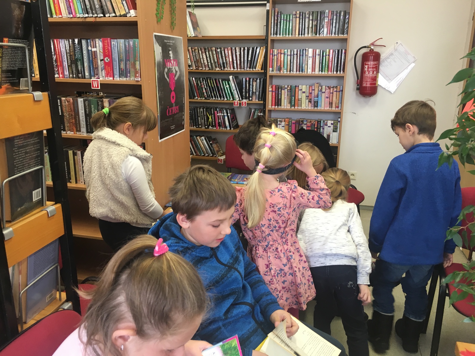 V úterý 19. 2. žáci 1. a 2. třídy navštívili místní knihovnu. Knihovnice paní Putíková si pro děti připravila besedu o Masopustu, vodění medvěda a o velikonočních tradicích. Na závěr nabídla dětem možnost stát se členy knihovny a seznámila je s knihovním řádem. Poté si děti prohlédly nabídku dětských knih a povídaly si o nich. Beseda se nám všem moc líbila a paní knihovnici moc děkujeme!