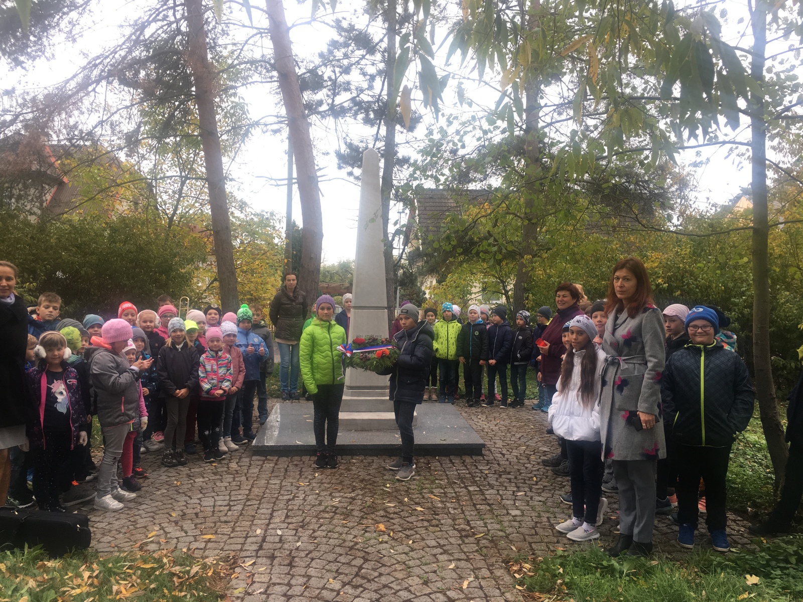 V pátek 26. 10. žáci naší školy oslavili 100. výročí vzniku republiky slavnostním položením věnce u památníků padlým vojákům. Při této příležitosti zazněla i oblíbená píseň našeho prvního prezidenta v podání školního sboru pod vedením paní učitelky Mgr. Gity Drozdové, za hudebního doprovodu žáka 5. ročníku naší školy.