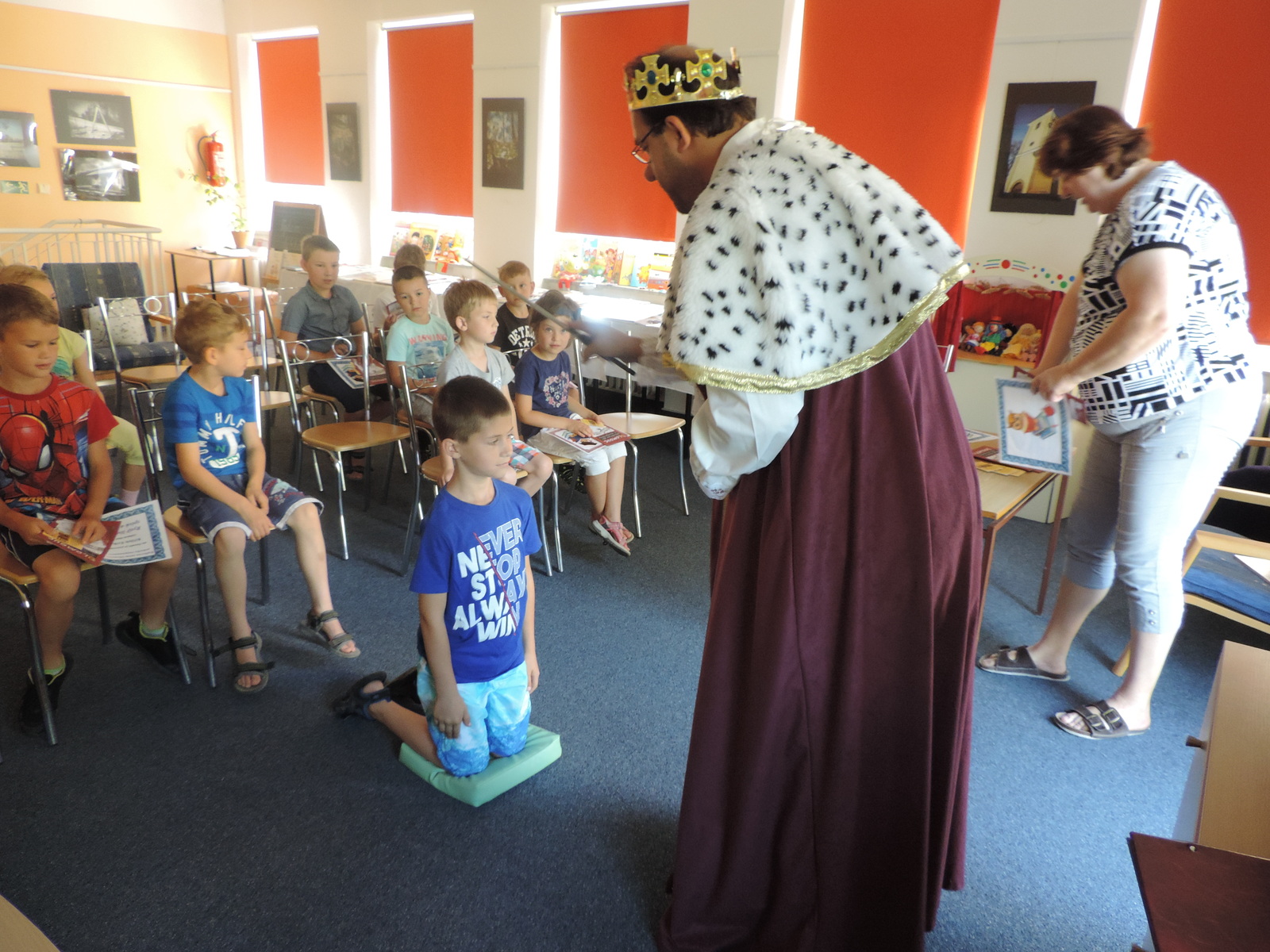 Za doprovodu hudby přišel za dětmi král, který každého přijal za rytíře listin, spisů a knih. Každý z nich následně obdržel diplom a dárkový poukaz pro zřízení čtenářského průkazu. Našim malým čtenářům se slavnostní ceremoniál líbil a už se těší, jak si budou číst o prázdninách své oblíbené knížky.