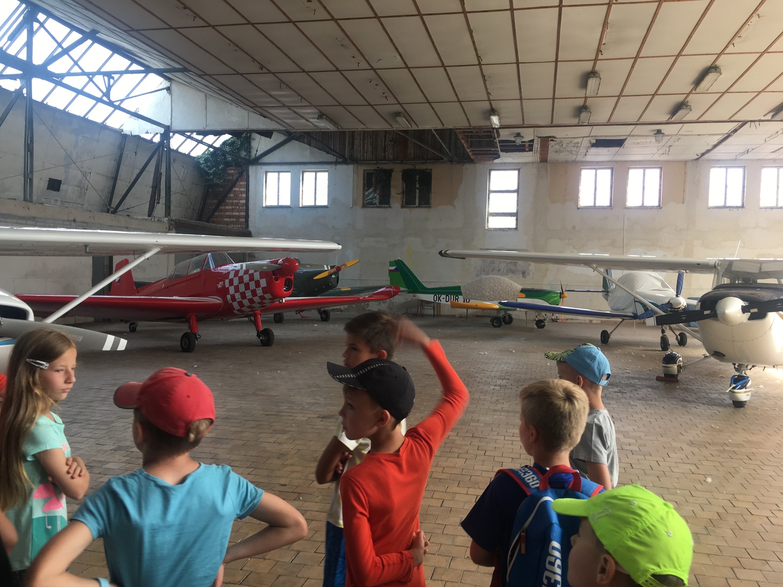 V pondělí 24. 6. se byly děti podívat na exkurzi na letiště v Neředíně. Letištěm nás provedl pan Ing. Vízek a pan Košťálek. Na začátku se děti dověděly něco málo o historii letadel, o létání, shlédly i ukázku použití padáku. Po té nás provedli hangáry, kde mají uschována letadla, jak motorová, větroňová, tak i vrtulníky. Prohlédli jsme si stálou expozici Historie Letiště Olomouc, kde byly krásné modely různých letadel, fotky letců a hrdinů z válek, děti si mohly vyzkoušet i historický pilotní trenažér. Na závěr prohlídky jsme vylezli na věž a před námi se rozprostřel krásný výhled na naši rodnou Hanou.