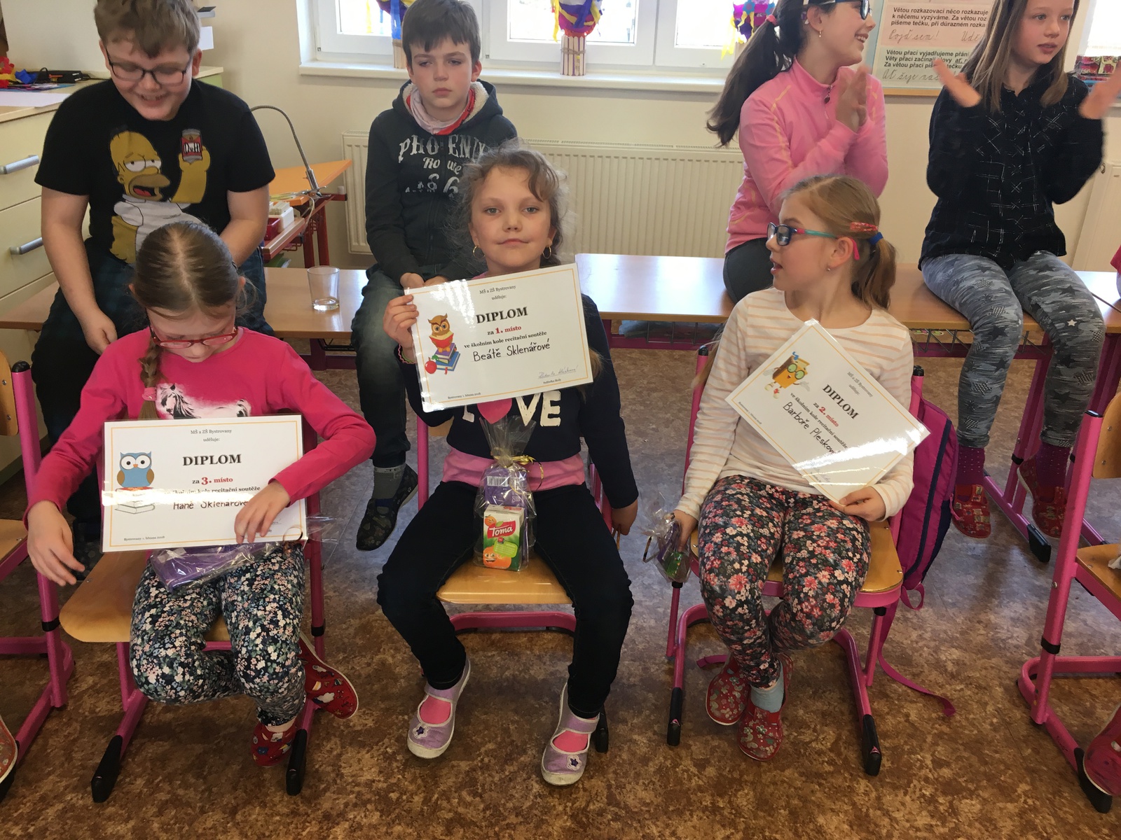 Gratulujeme a postupujícím budeme držet palce v nadcházejícím regionálním kole recitační soutěže mikroregionu Bystřička, které se bude konat 28. 3. 2018 v Tršicích.