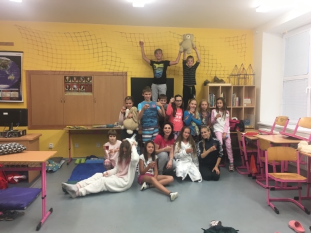 I letos si naši žáci 5. ročníku mohli vyzkoušet, jaké to je, zůstat ve škole přes noc! Třída se najednou promění v jednu velkou noclehárnu a o dobrodružství, zábavu a příběhy není nouze. Všichni jsme si to pořádně užili.