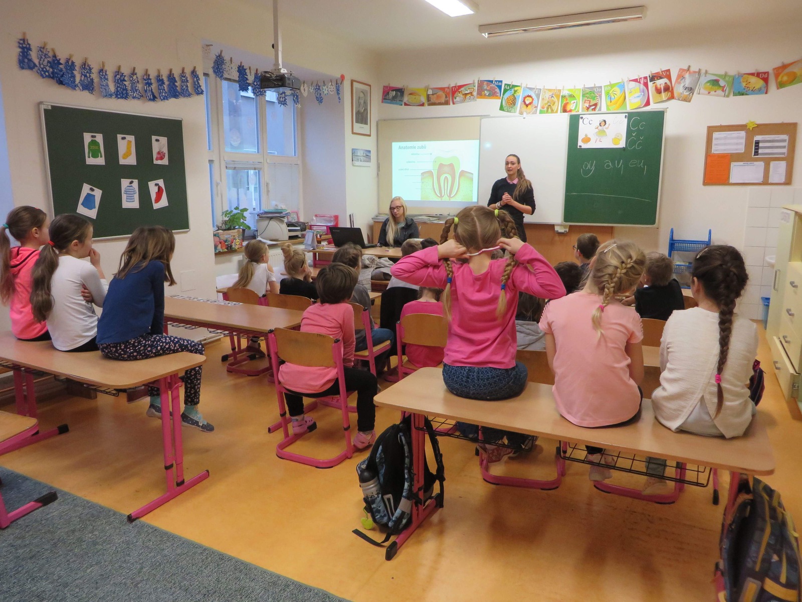 Ve čtvrtek 15.února se žáci naší školy zúčastnili přednášky studentek dentální hygieny. Během jedné vyučovací hodiny si pověděli, jak se správně starat o své zuby.