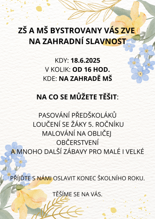 Úvod > Mateřská škola > Aktuálně z MŠ > Pozvánka na zahradní slavnost