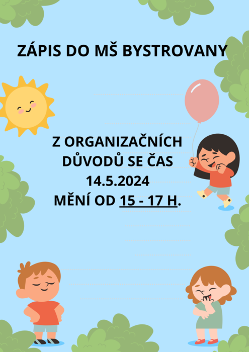 Úvod > Mateřská škola > Aktuálně z MŠ > Zápis do MŠ Bystrovany - ZMĚNA