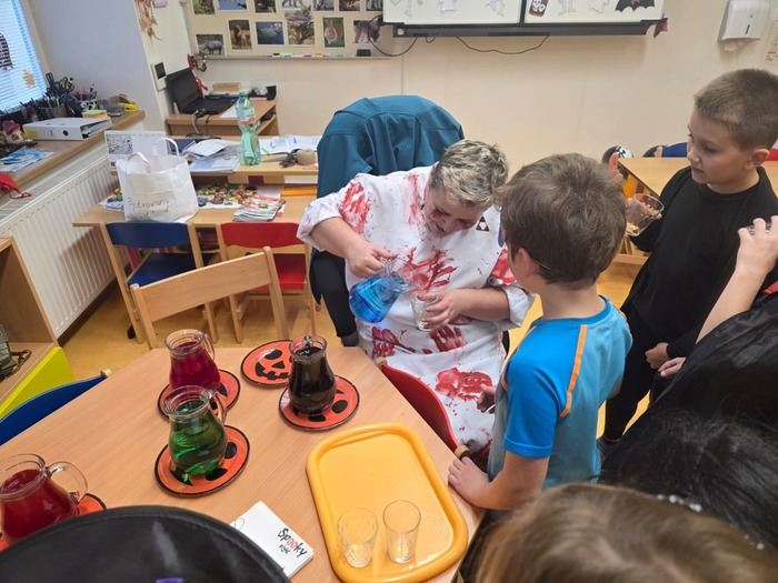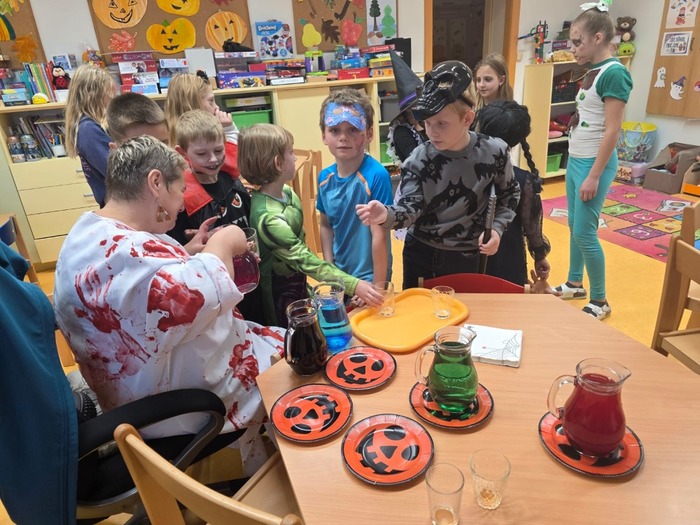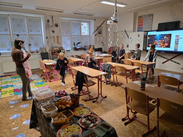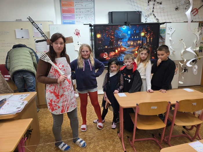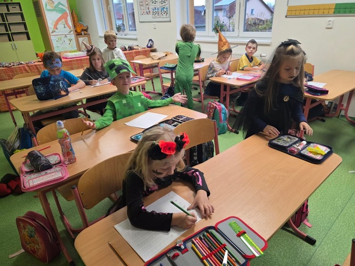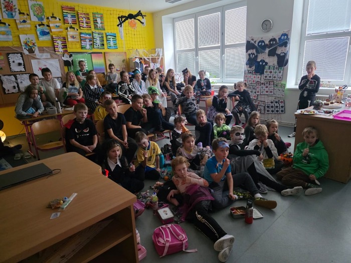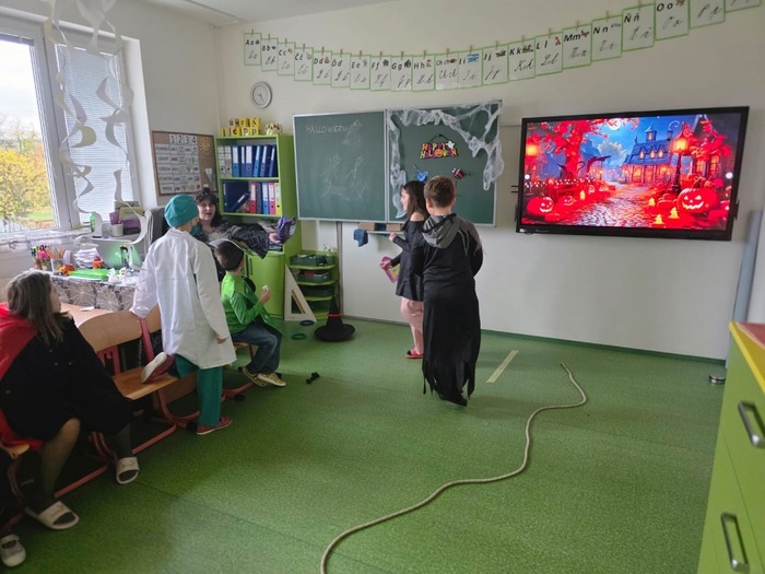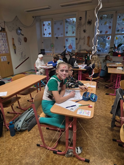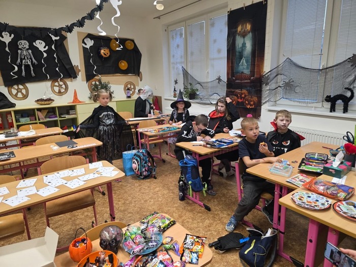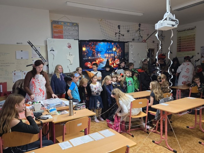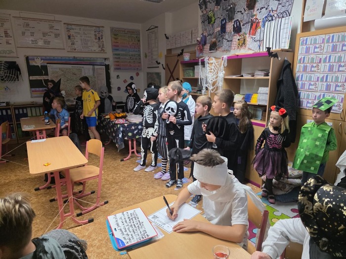 24.10. si naši školáci užili halloweenské dopoledne plné zábavy, her a soutěží. Děti plnily různé úkoly s kouzelně strašidelnou tématikou, procvičily si postřeh, spolupráci i šikovnost. Součástí dopoledne byla také projekce strašidelné pohádky Hotel Transylvánia, která děti příjemně naladila a uzavřela celé halloweenské dopoledne v pohodové atmosféře.