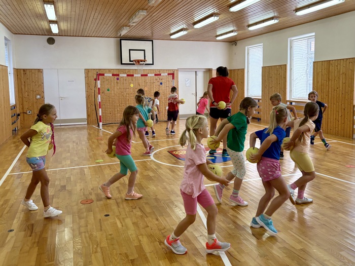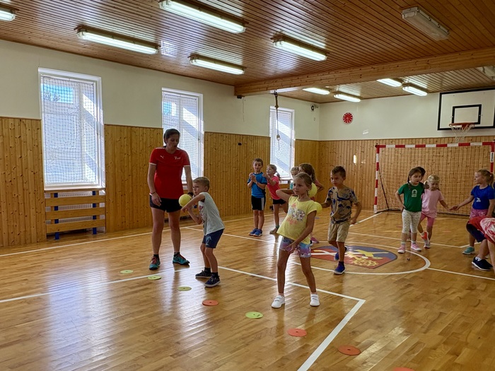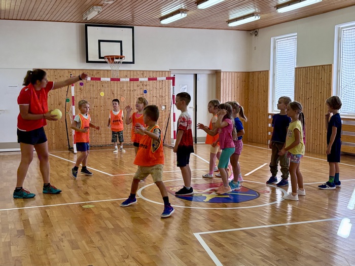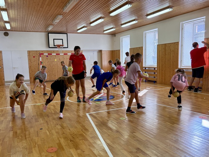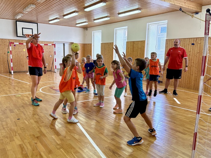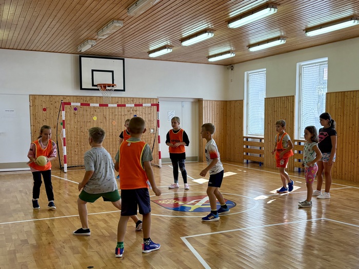V úterý 9. září 2025 se žáci naší školy pod vedením zkušených trenérů Pavla a Klárky seznámili se základy házené. Žáci si vyzkoušeli, jakou formou probíhá hodina tréninku. Učili se postoj, úchop míče, přihrávky a házení na branku. V závěru hodiny si třídy zkusily zahrát mini zápas. Cílem bylo obohatit výuku a podpořit tento sport. Zájemci z řad dětí se mohou do kroužku házené přihlásit a dále se rozvíjet.