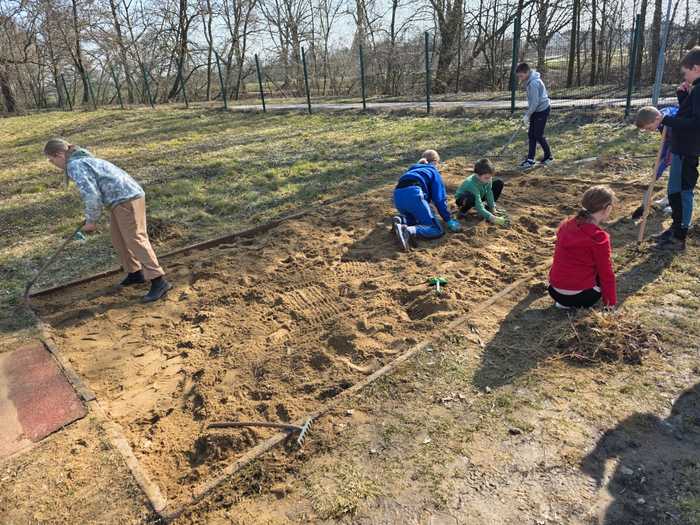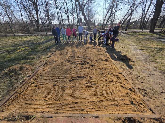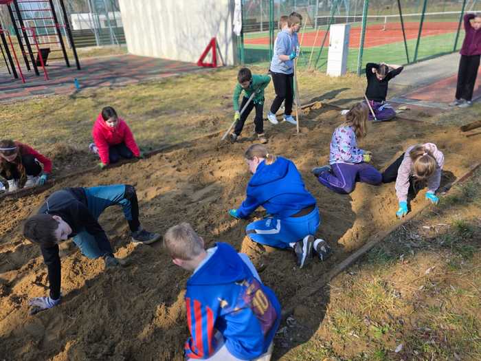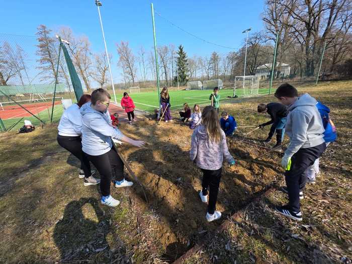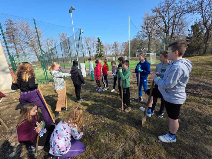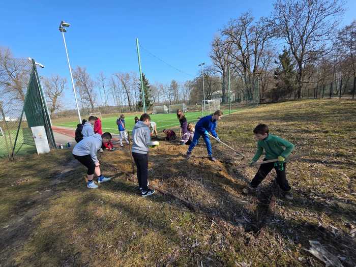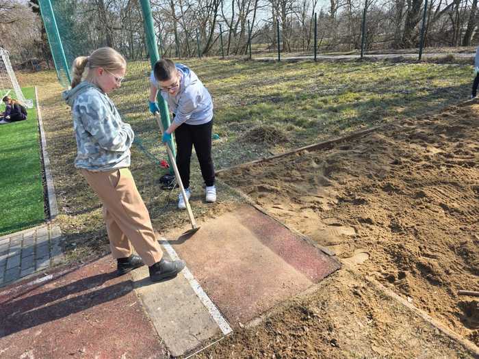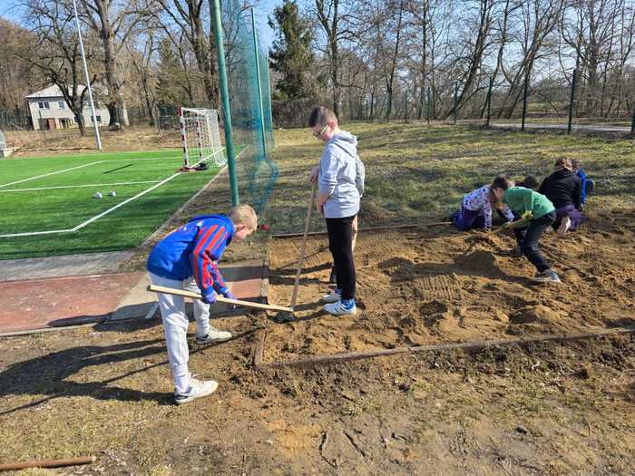 6.3. 2026 se žáci 4. a 5. třídy v rámci předmětu pracovní činnosti zapojili do úpravy doskočiště na školním hřišti. Společně plochu vypleli a upravili, aby mohla být opět plně využívána při hodinách tělesné výchovy.
