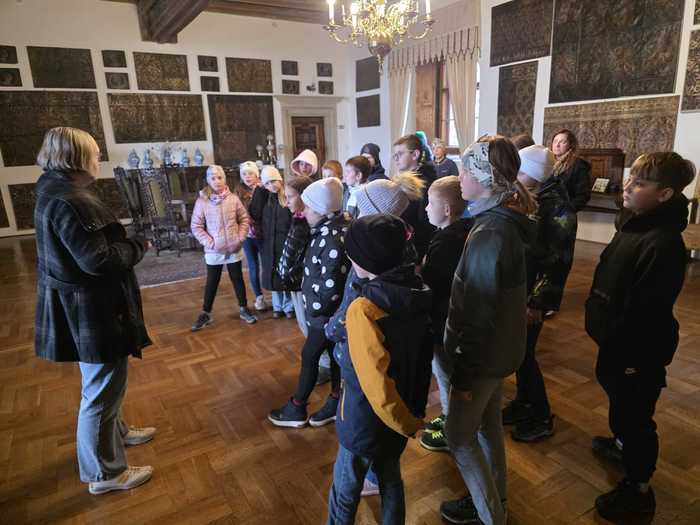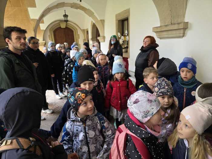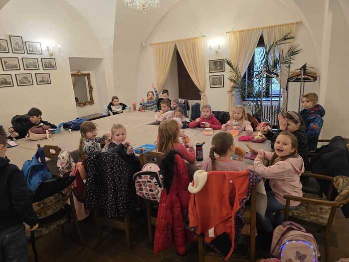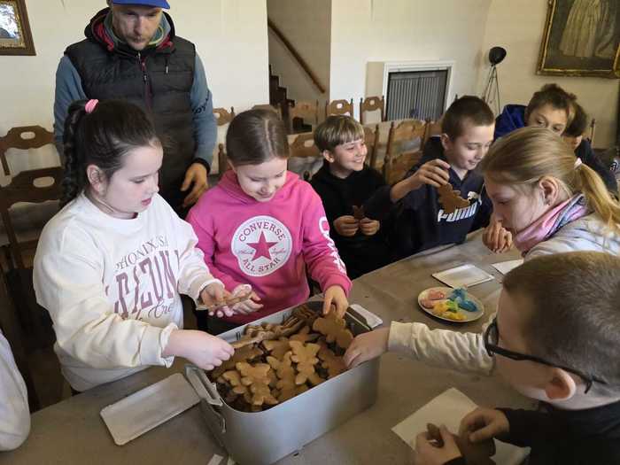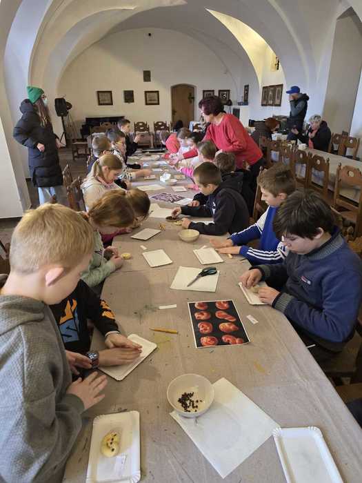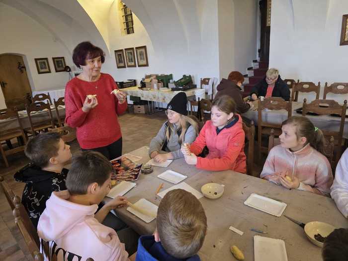 Během prohlídky je průvodce seznámil s velikonočními tradicemi a provedl je slavnostně nazdobenými interiéry. Žáci si měli možnost vyzkoušet tradiční velikonoční aktivity - upekli si voňavé jidáše a nazdobili perníkového zajíce.