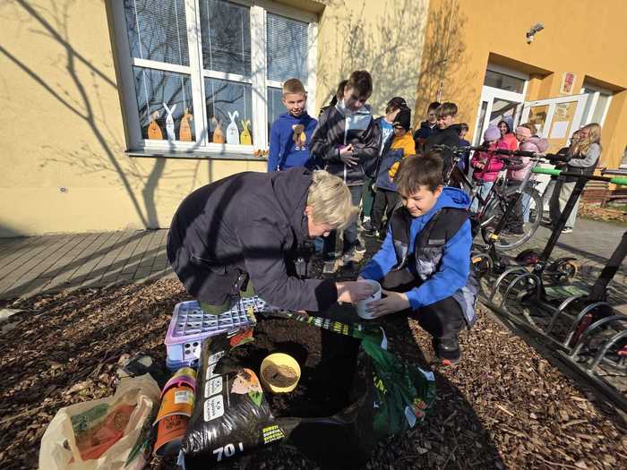 23. března si žáci naší školy zasadili do květináčů, které si přinesli z domova, velikonoční osení. To se stane součástí dekorace na ,,Velikonočních dílnách", které se uskuteční 1.4.2026 od 16:00 hodin v prostorách sálu v Bystrovanech. Po skončení akce si děti své osení odnesou domů.