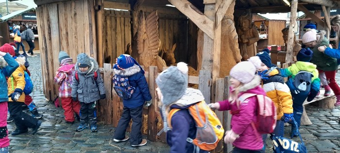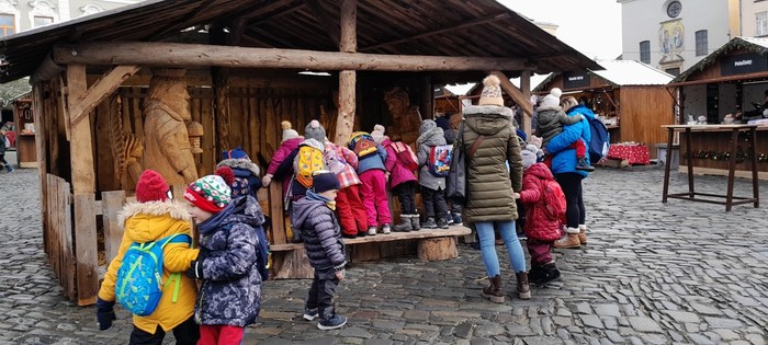 V úterý 12. 12. 2023 jsme se vydali načerpat adventní atmosféru do Olomouce. Kostel sv. Michala, který jsme měli původně v úmyslu navštívit byl zavřený, tak jsme, po procházce historickými uličkami, vzali za vděk kostelu Zvěstování Páně na Dolním náměstí. Tam jsme si zazpívali pár koled. Poté jsme si prohlédli dřevěný betlém, zazvonili na zvonek přání pod vánočním stromem na Horním náměstí a vydali se zpět do školky. Celá akce pomohla dětem zase trochu přiblížit význam vánočních tradic a jejich poslání.