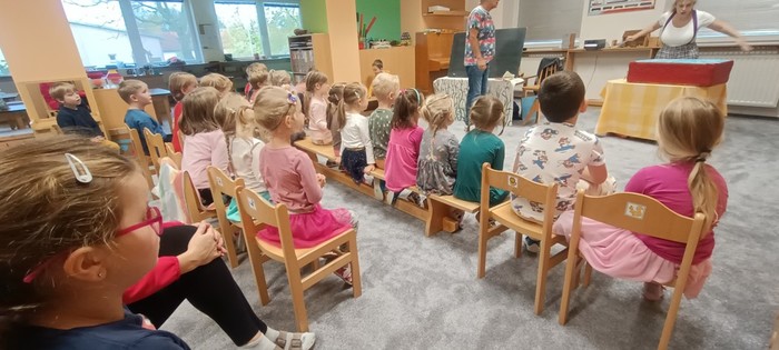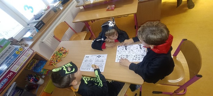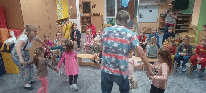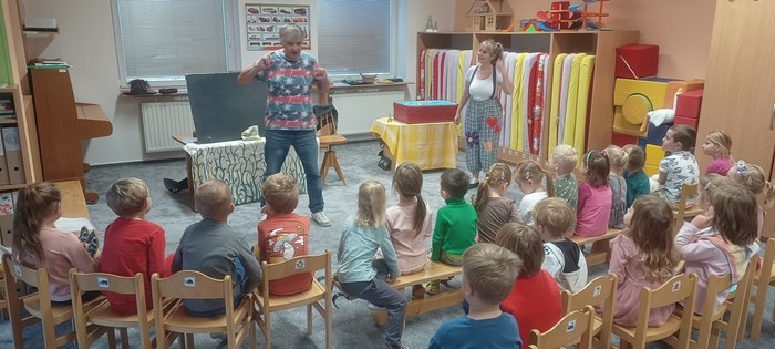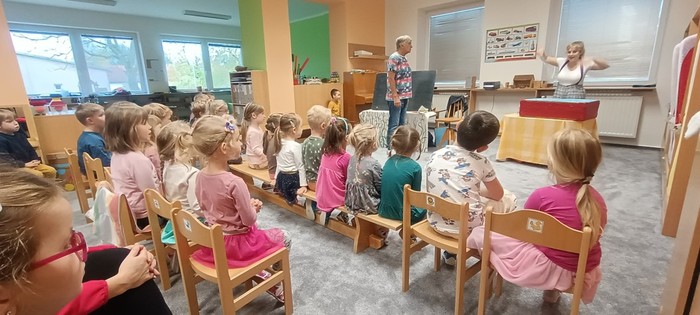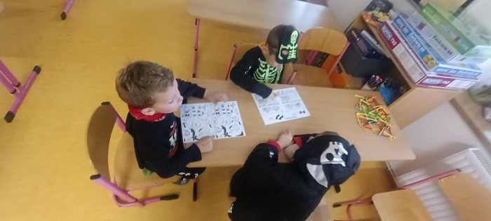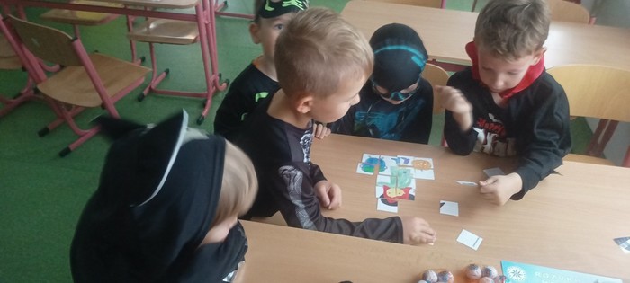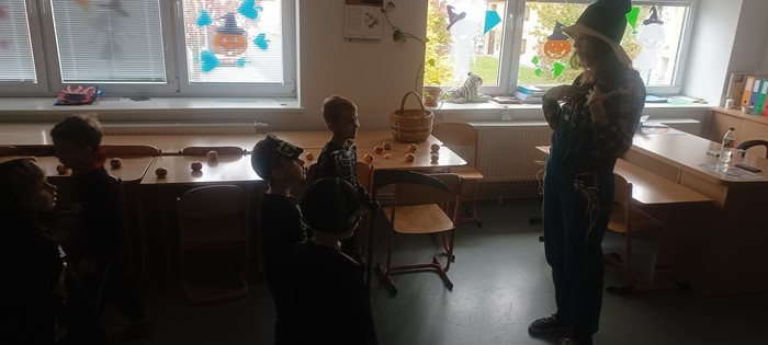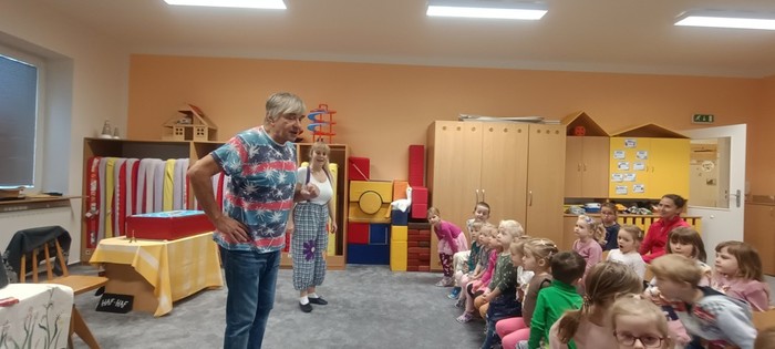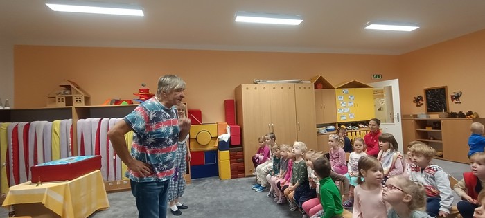 V říjnu a části listopadu jsme mimo jiné ve školce shlédli dvě divadelní představení, pracovali na společných výtvarných projektech, oslavili Halloween, upekli a nazdobili perníčky pro školáky a užívali si podzimního počasí při poznávání našeho okolí.