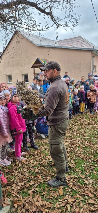 22.10. se děti ze ZŠ a MŠ zúčastnily poutavé akce ,,Dravci". Na školní zahradě se mohly zblízka seznámit s několika druhy dravých ptáků a sov, které běžně v přírodě jen tak nevidíme. Děti si prohlédly orlici stepní, sovu pálenou, puštíka, sýčka a další dravce. Každý z nich byl doprovázen zajímavým výkladem zkušeného sokolíka, který dětem přiblížil nejen jejich způsob života, ale tako to, jak se o dravce starat a proč je důležité je chránit. Největší nadšení vyvolaly ukázky letu některých dravců. Celá akce byla pro všechny zajímavá a poučná. Děti si odnesly nejen spoustu nových poznatků, ale i krásné zážitky z blízkého setkání s těmito nádhernými dravci.
