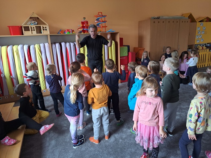 Ve středu 8. listopadu 2023 nás navštívil pan Slávek Boura se svými Logohrátky. Jednalo se o originální, zábavní program pro děti. Nebyl to přímo individuální nácvik správné výslovnosti, ale spíše motivační zaměření na rozvoj komunikačních schopností, jemné i hrubé motoriky apod. Děti byly nadšené, celou dobu s panem Slávkem spolupracovaly.