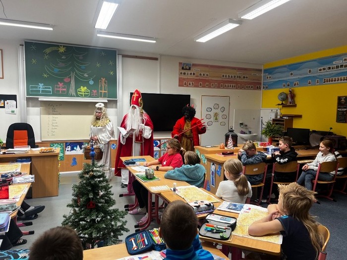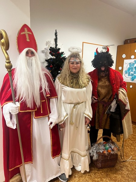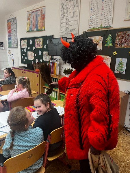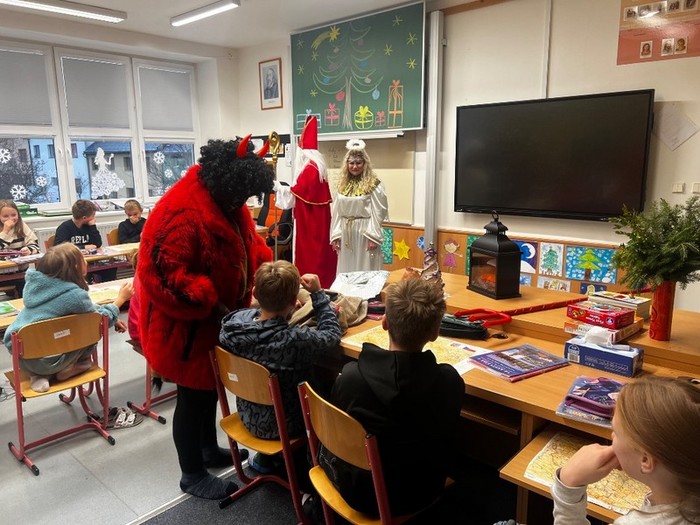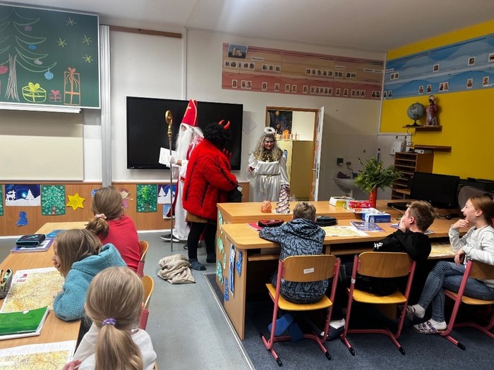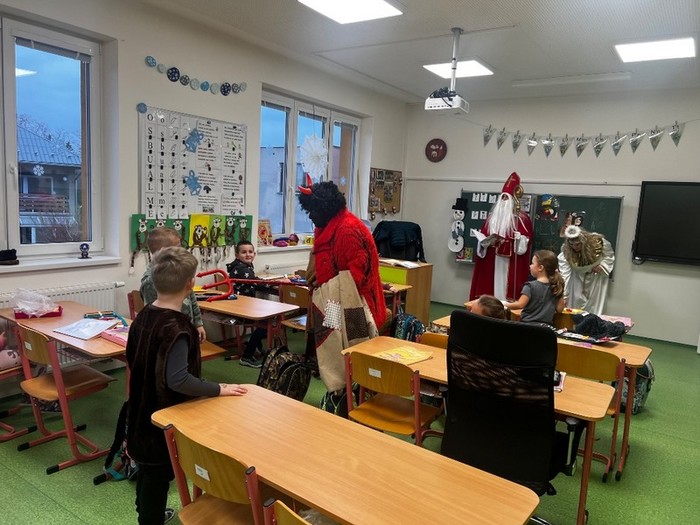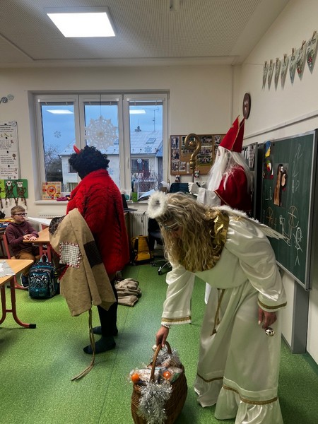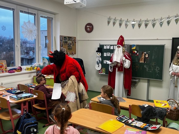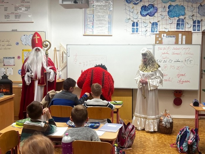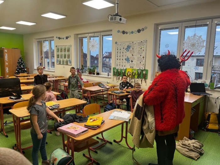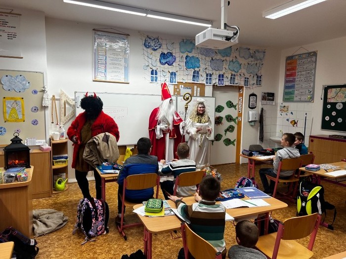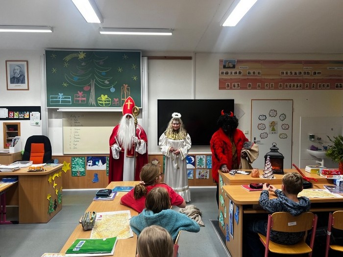 Úvod > Základní škola > Fotogalerie ZŠ > Mikuláš, anděl a čert ve škole