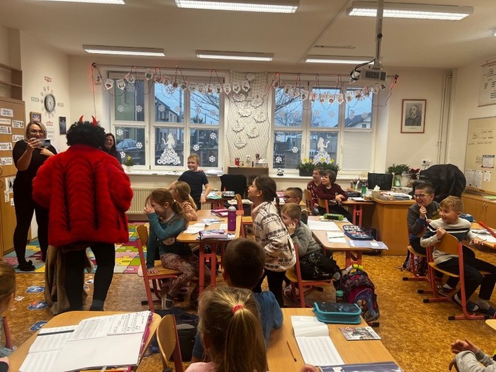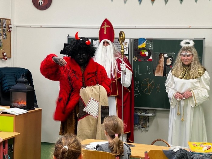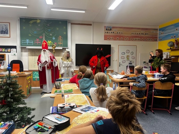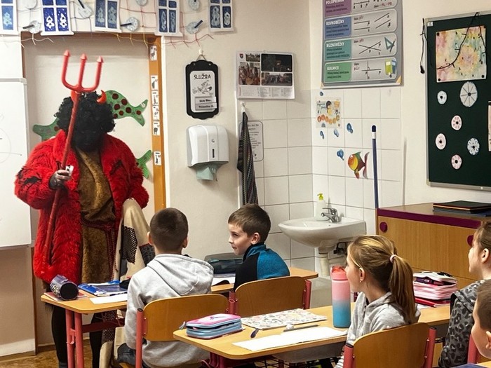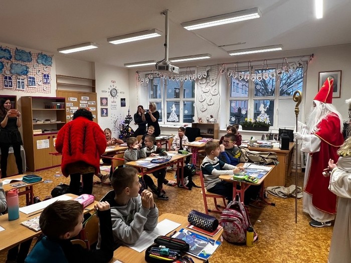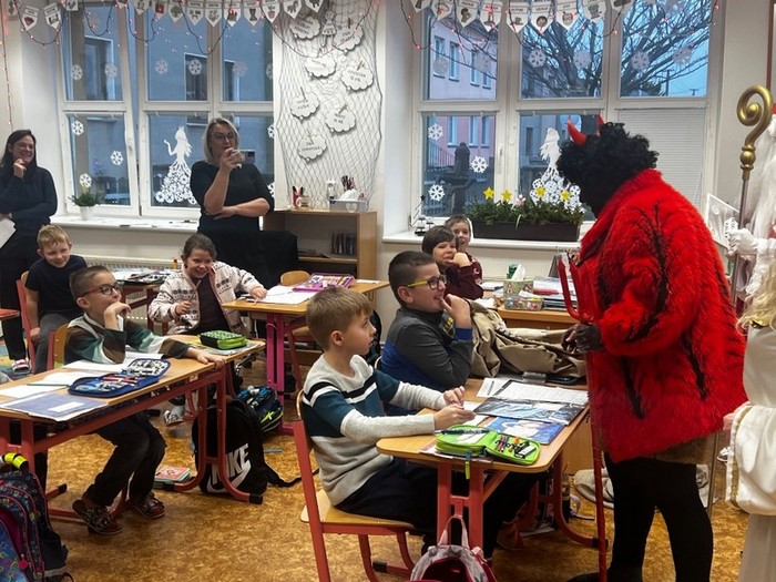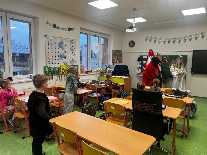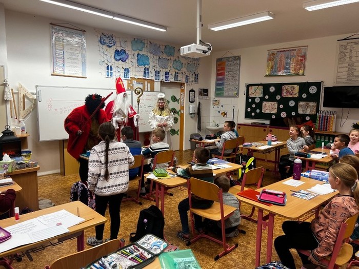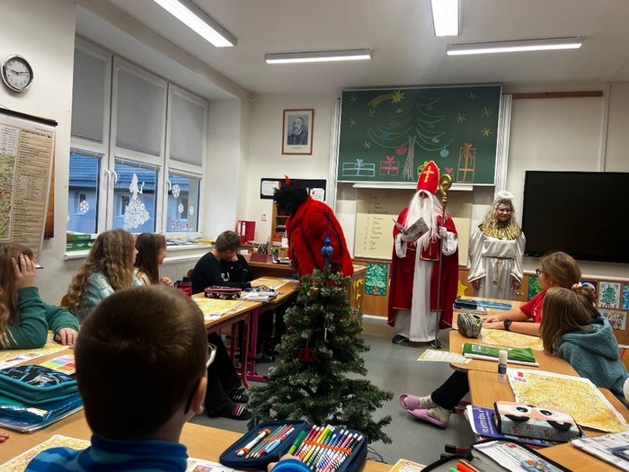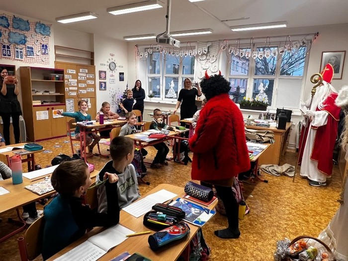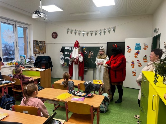 Úvod > Základní škola > Fotogalerie ZŠ > Mikuláš, anděl a čert ve škole
