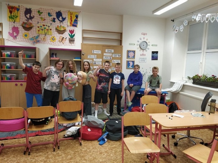 Úvod > Základní škola > Fotogalerie ZŠ > Noc plná dobrodružství: Páťáci přespali ve škole