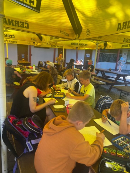 Úvod > Základní škola > Fotogalerie ZŠ > Tvoření venku při plánovaném výpadku elektřiny